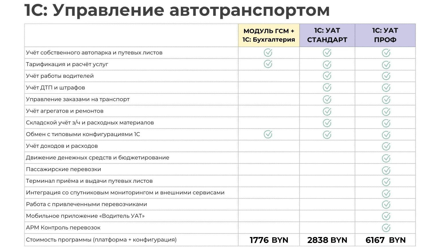 Программа Управление автотранспортом и учет ГСМ в 1С позволяет вести: управление заказами, учет сопроводительных документов, планирование и контроль рейсов, учет простоев и опозданий.